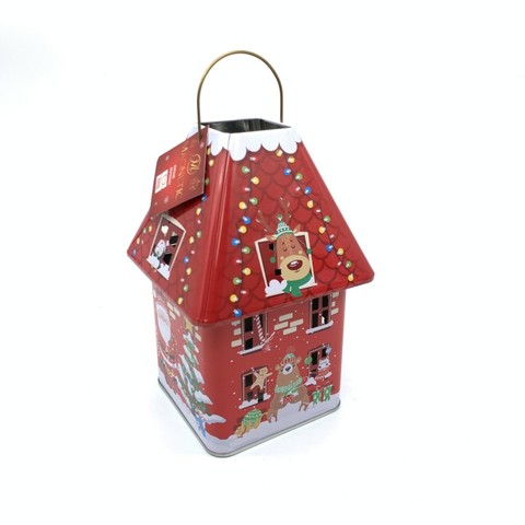 クリスマスハウスランタン形状不規則形状デザインキャンディーブリキボックスキャンドル缶ホルダー付きキャンディーギフトブリキボックス