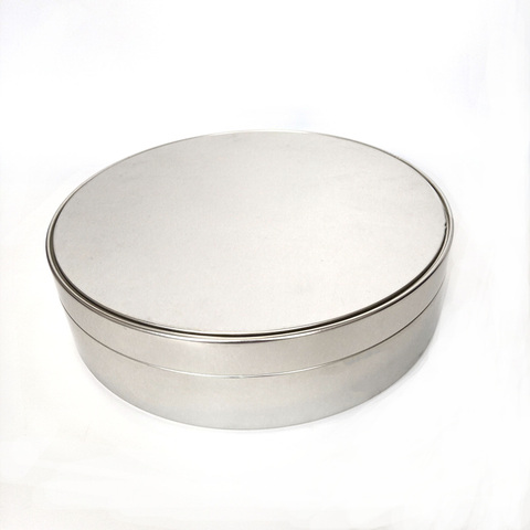 अच्छी गुणवत्ता कोई मुद्रण दौर टिन बॉक्स खाद्य ग्रेड mooncake टिन बॉक्स केक, कुकी टिन कंटेनर बड़े आकार दौर धातु बॉक्स